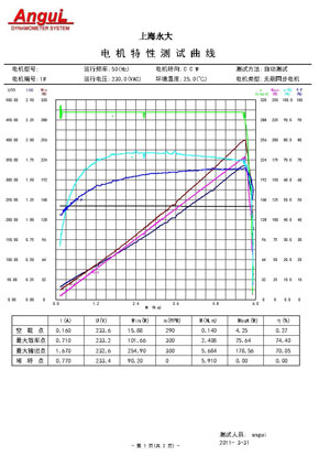 3. Automatically do AC/DC brushless motor performance test in 0~120 sec, and draw out the motor characteristic curve M=f(U, I, W, n, P,η,cosΦ).